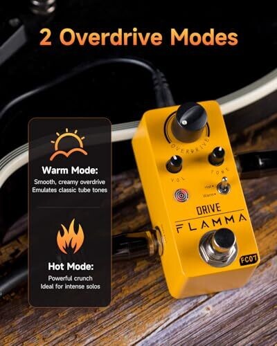 Flamma Fc07 Overdrive – Mini Analog Guitar Pedal, Vintage Warm/Hot Modes, True Bypass