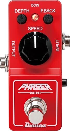 Compact Ibanez PHMINI Phaser Pedal delivers sweeping phaser tones with a compact, travel-ready enclosure. Red design provides stage visibility, while Depth, Speed, and Feedback control a wide range of textures from subtle shimmer to deep modulation. True bypass preserves tone when off.