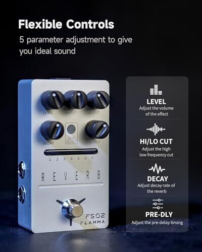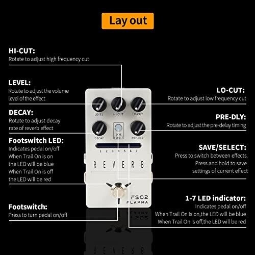 • Flamma Fs02 Reverb Guitar Pedal 7 Preset Slots 7 Reverbs Room Hall Church Cave