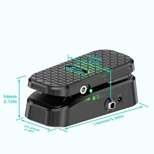 Guitar Wah Pedal with 23 wide range pedal travel for volume and wah control. High performance guitar effects pedal features double color LED lights and RM shielded inductor. 6.35mm input/output for compatibility with instruments and audio devices. Compact dimensions
