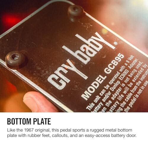 Heavy die-cast construction for years of reliability. The original crybaby wah wah pedal that has been a standard in the world of music since its introduction in the late 1960's. 100k ohm hot potz potentiometer that allows for that quick, abrupt wah sound. Powered by the optional dunlop ecb-003 ac adapter and/or 9 volt battery(sold separately). Relied on by jimi hendrix, eric clapton, buddy guy, david gilmour, and many other greats. NOTE: