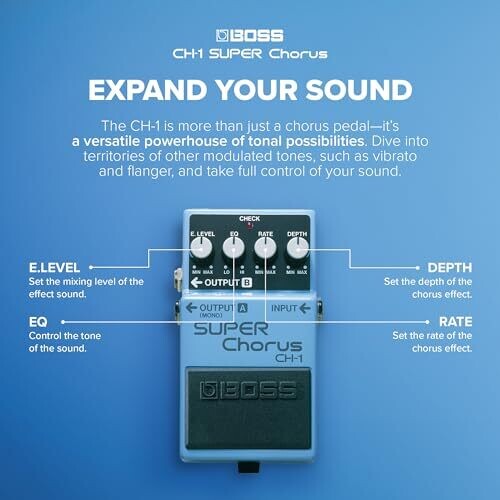 • Experience lush, studio-grade chorus tones with the Boss CH-1 that enhances guitar and keyboard performances.
