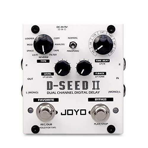 • JOYO D-SEED-II Dual Channel Digital Delay Guitar Pedal combines studio-quality effects with practical live performance versatility.