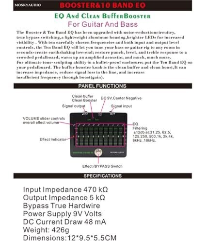 • Booster 10-Band EQ Effect Pedal Clean Buffer Booster for Guitar Bass True Bypass