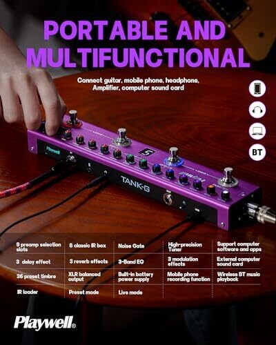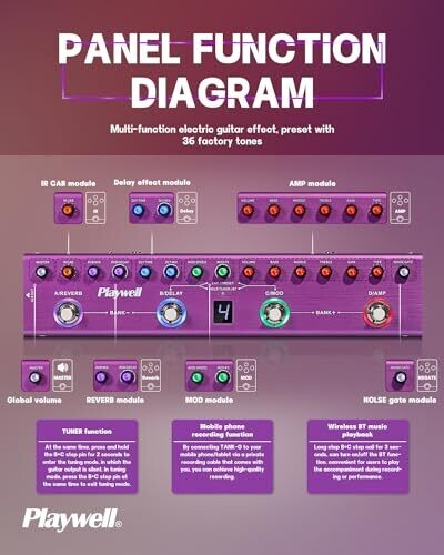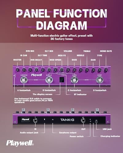 Playwell Multi Effects Guitar Pedal Tank-G with 36 Presets Chorus, Delay, Reverb, Mod, Ir