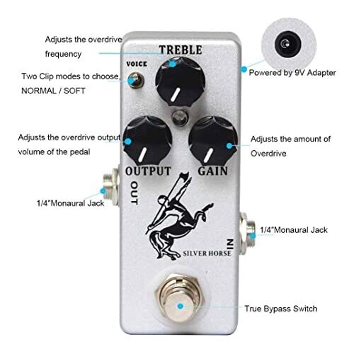 • Mosky Silver Horse Overdrive Guitar Effect Pedal Metal Shell Switch True Bypass