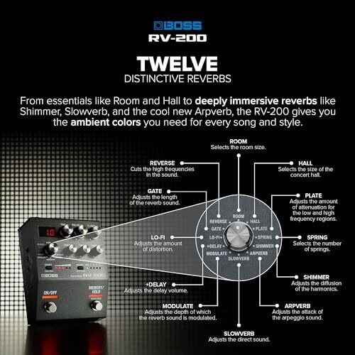 - Includes 12 reverb types, enabling everything from subtle ambience to expansive textures.