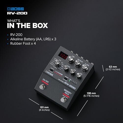 Boss Rv-200 Reverb | Premium Processing In Streamlined Boss 200 Series Pedal | 12 Reverb Types Arpverb | 127 Memories