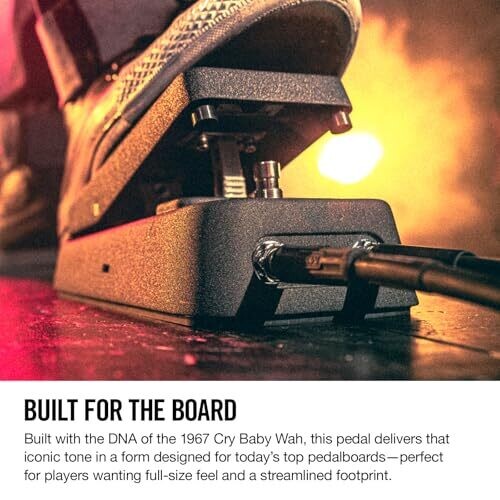 The pedal is designed for Pedaltrain boards to ensure compact, clean cable management; front-mounted input, output, and power jacks reduce side clutter; a bright LED indicates when the effect is engaged; it provides three voices—Low, Vintage, and High (GCB95); it uses the Fasel inductor known for characteristic cry baby tone; built for durability and long-term reliability; designed and tested in the USA for professional performance and studio use.